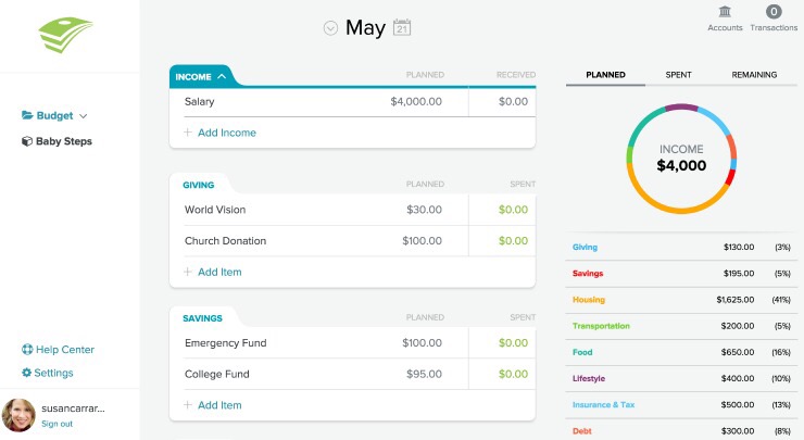 Secondly, I got on a budget. I knew I needed to use a budgeting tool that was as easy as possible to use, and ideally pretty to look at. In the end, I chose Every Dollar to use. With this tool the idea is that every single dollar has a home. You create all the different buckets for bills, savings, pet care, … and every dollar is accounted for. I have it synced to my bank accounts to easily log transactions, and I have it set up to send me notifications twice a week to remind me to log them.