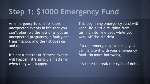 Building this emergency fund of $1,000 will allow me to throw all my extra dollars towards debt, and will give me a safety net for those unexpected emergencies.