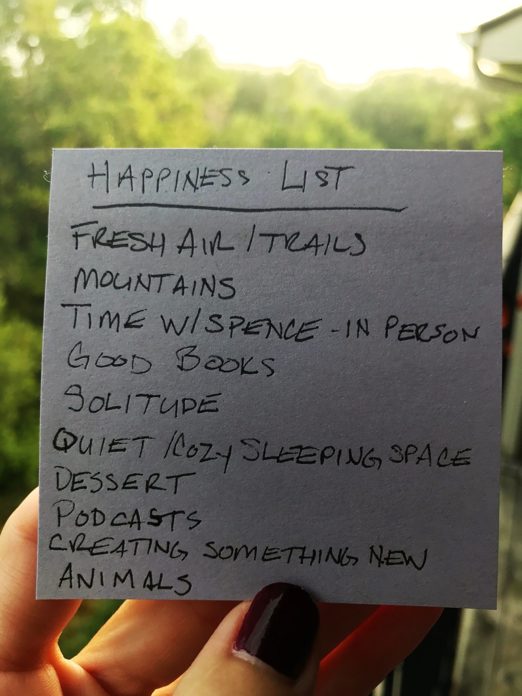First, I have it set as the lock screen on my phone so I see it multiple times each day. I refer to it often to see how many ‘happiness items’ I experienced each day. It helps me to know that I’m taking good care of myself and staying true to what I enjoy most.